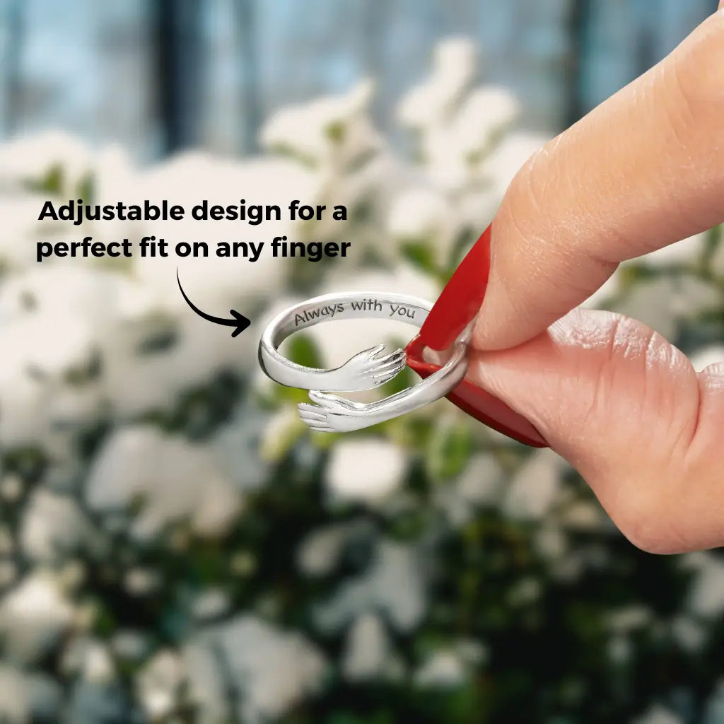 The Hug Ring To My Daughter by Eilyor is an adjustable hug ring that wraps a pair of tiny sculpted hands around the finger like a warm embrace. Designed as a symbolic “always with you” gift, this stainless steel hug ring is perfect for anyone searching for a hug ring for daughter, hug ring for women, gold hug ring or sterling silver style hug ring. Its minimalist open band shape, dainty lines and emotional meaning make it a beautiful everyday love ring, promise ring or friendship ring she can keep close wherever life takes her.