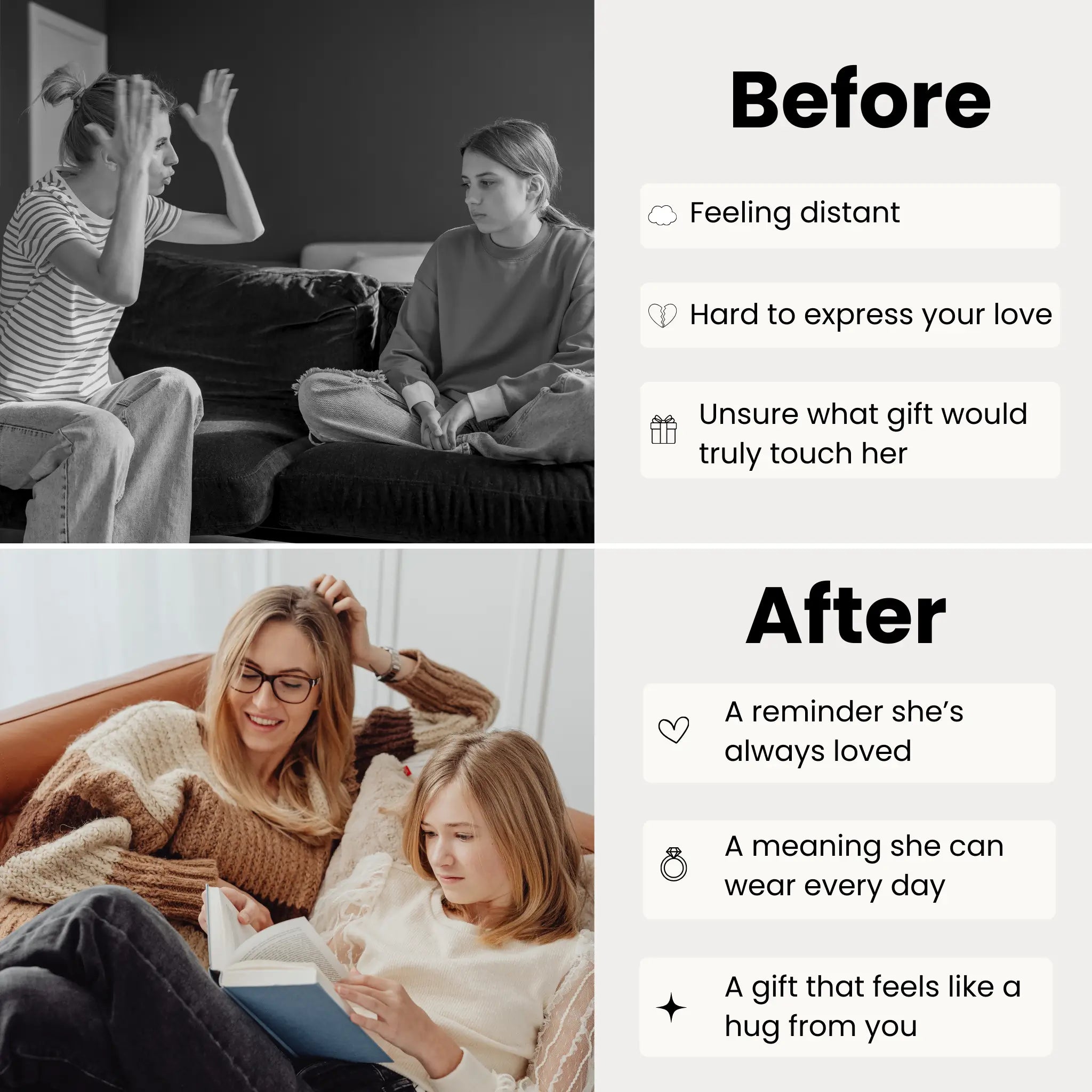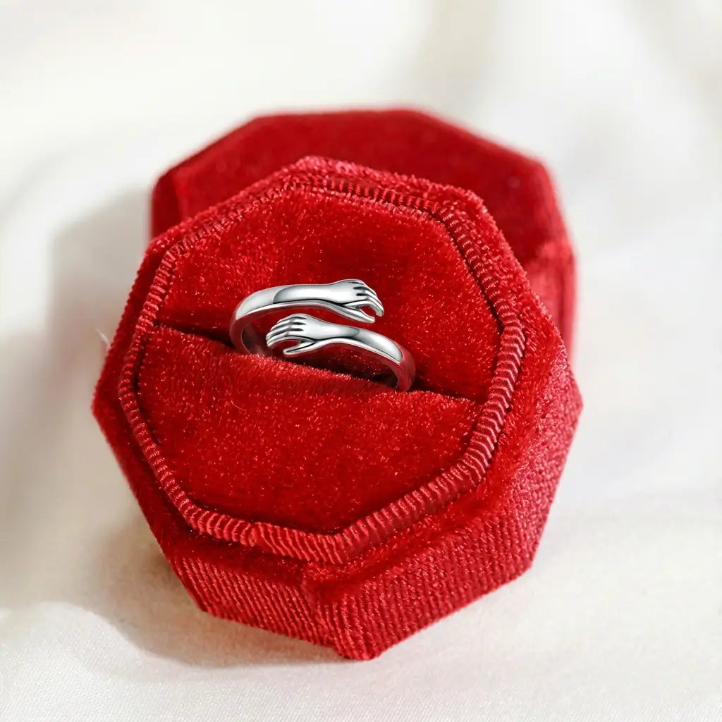 Every detail of this hugging hands ring is made to express connection and comfort. The two polished hands curve toward each other to form a soft, continuous line, creating the look of a tiny hug that she can see whenever she looks down at her hand. It is a thoughtful empathy ring and comfort ring for moments when you cannot be there in person but still want her to feel loved, supported and never alone. Each time she fiddles with the band or traces the shape of the hands, it acts as a quiet reminder that someone is always cheering her on.