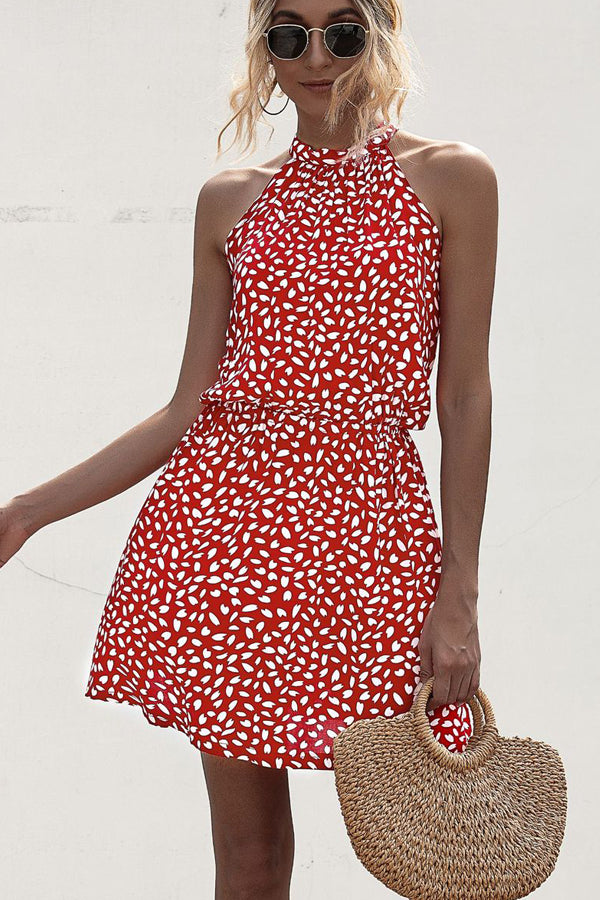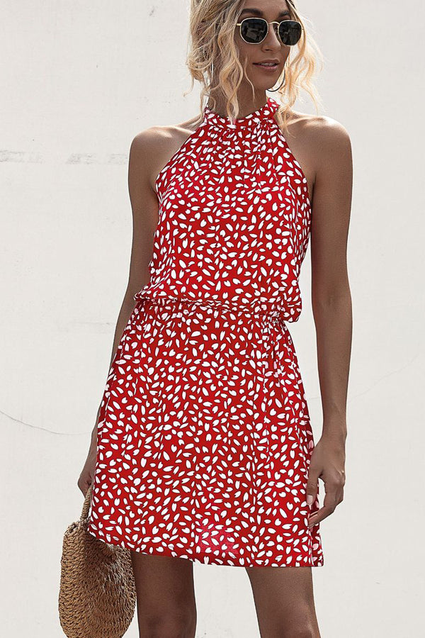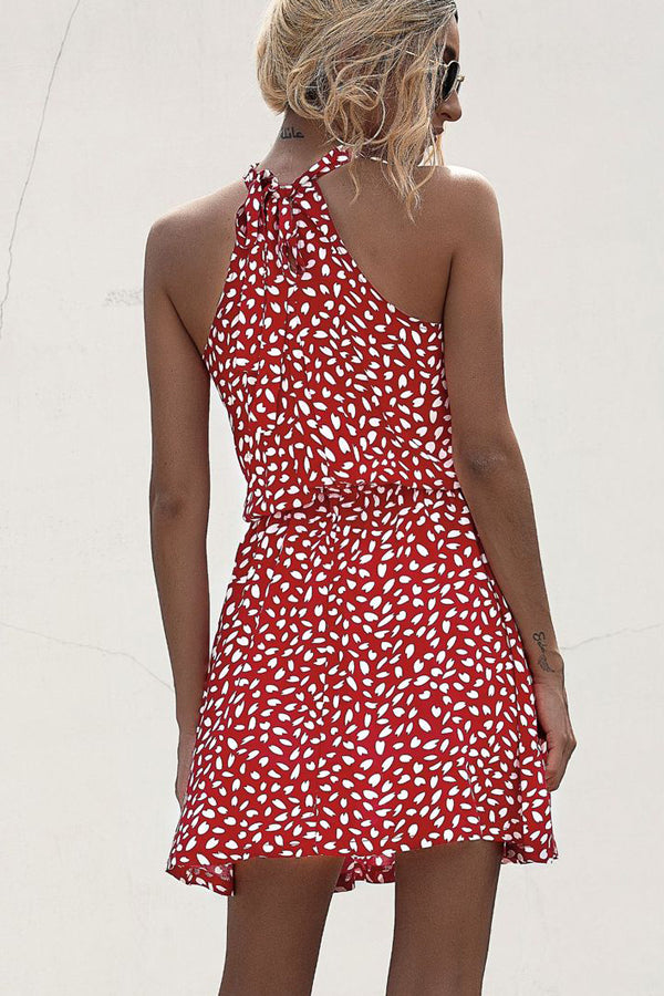 • Polka Dot Print Halter Neck Casual Dress
